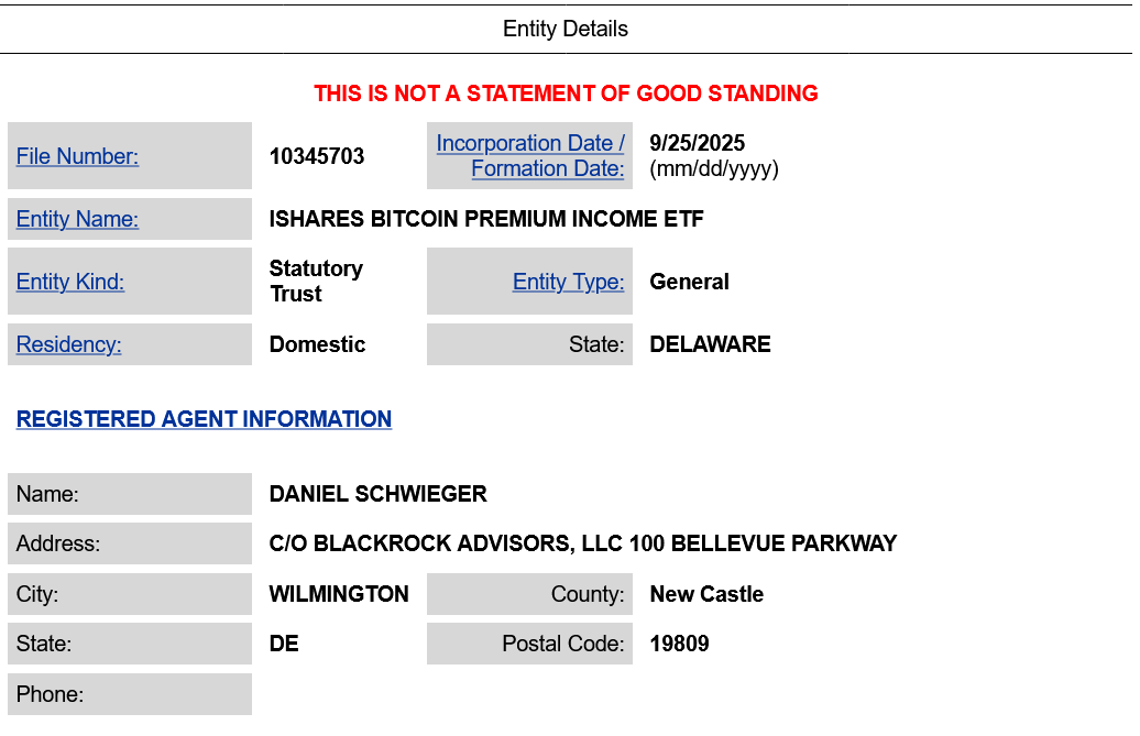 资产管理巨头贝莱德 (BlackRock) 周四申请为其拟议的比特币溢价收入ETF注册特拉华州信托公司,这标志着扩大其比特币产品的努力。 彭博ETF分析师Eric Balchunas说贝莱德的建议product将出售比特币期货的看涨期权,收取溢价以产生收益。 然而,定期分配将失去投资贝莱德现货比特币ETF的潜在上涨空间,这反映了比特币的价格走势。 在特拉华州注册信托备案通常表明,ETF发行人将在即将提交S-1注册声明或19b-4备案证券交易委员会正式启动这一进程。