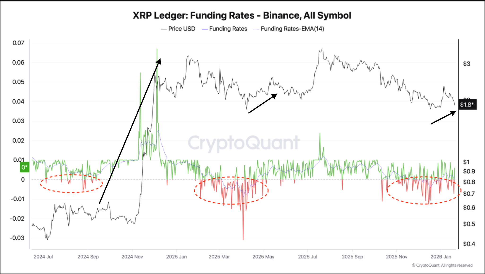 XR$1.91在币安的融资利率自2024年以来一直呈现出与大幅价格反弹前相似的走势。 要点: